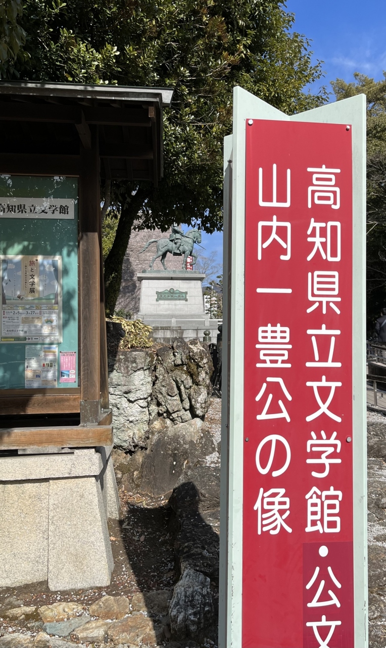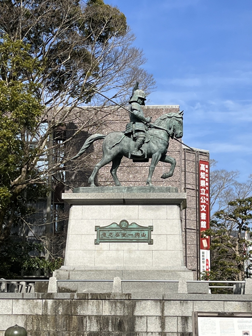 その石碑の先に「山内一豊」の騎馬像がありました。