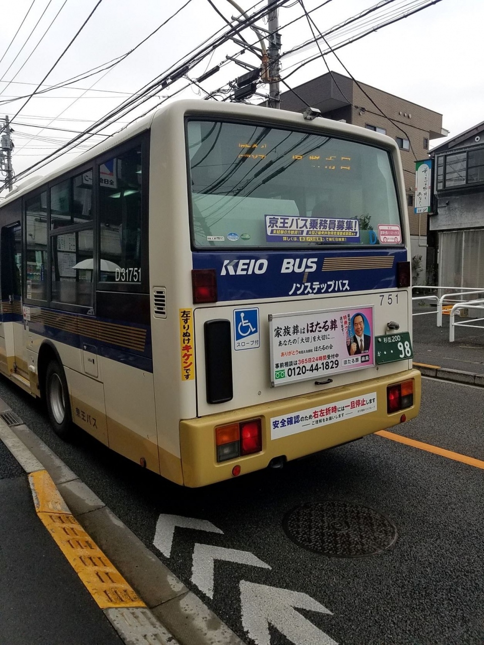 久我山駅から連雀通り商店街まで乗車しました。ここのところ千歳烏山駅や仙川駅から吉祥寺駅行きの小田急バスに乗る機会が多く、京王線と京王井の頭線の駅間を縦に結んでいるのに小田急バスが幅を利かせているんだなと思っていたのですが、やっと京王バスに乗る機会に恵まれました。平日のお昼でしたがこの路線は本数も多くて使い易かったです。