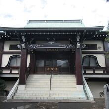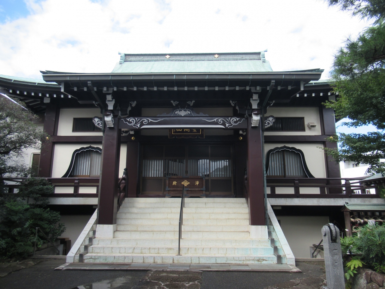 柴又駅から住宅街を通り5分ほどのところに建つ曹洞宗の寺院です。柴又七福神の一つ・福禄寿が祀られています。地中から数体の人骨が発掘されたため、地元の人たちの要望で1928年に建立された新しい寺です。大きな山門は工事中でしたが、山門横のしだれ桜と境内の松が印象的でした。