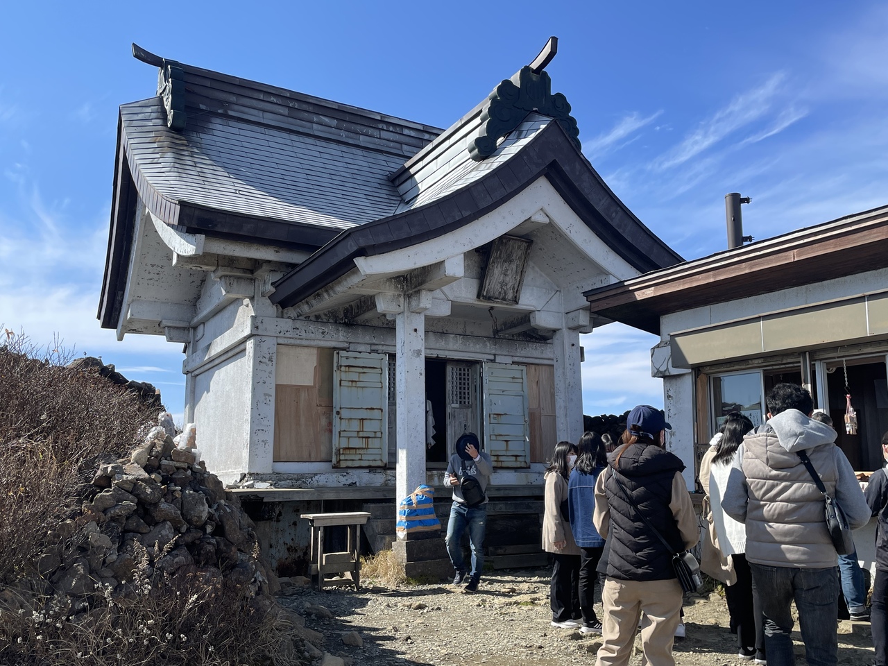 1か月半ぶりに再訪しました。9月に訪れた時は真っ白で視界がききませんでしたが、お釜展望台のすぐ上にあります。歩いて10分とかかりませんが、高所なので、ゆっくりゆっくりと。奥宮ではご朱印も扱っていました。