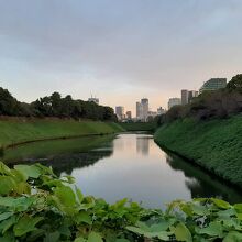 夕暮れ時の風景が美しかったです。お堀に、夕焼けや、周辺の緑や、高層ビルディングなどが写り、きれいな光景でした。やはり、緑と水の調和はステキでした。そして、秋の空や夕焼けとのコラボレーションも印象的でした。