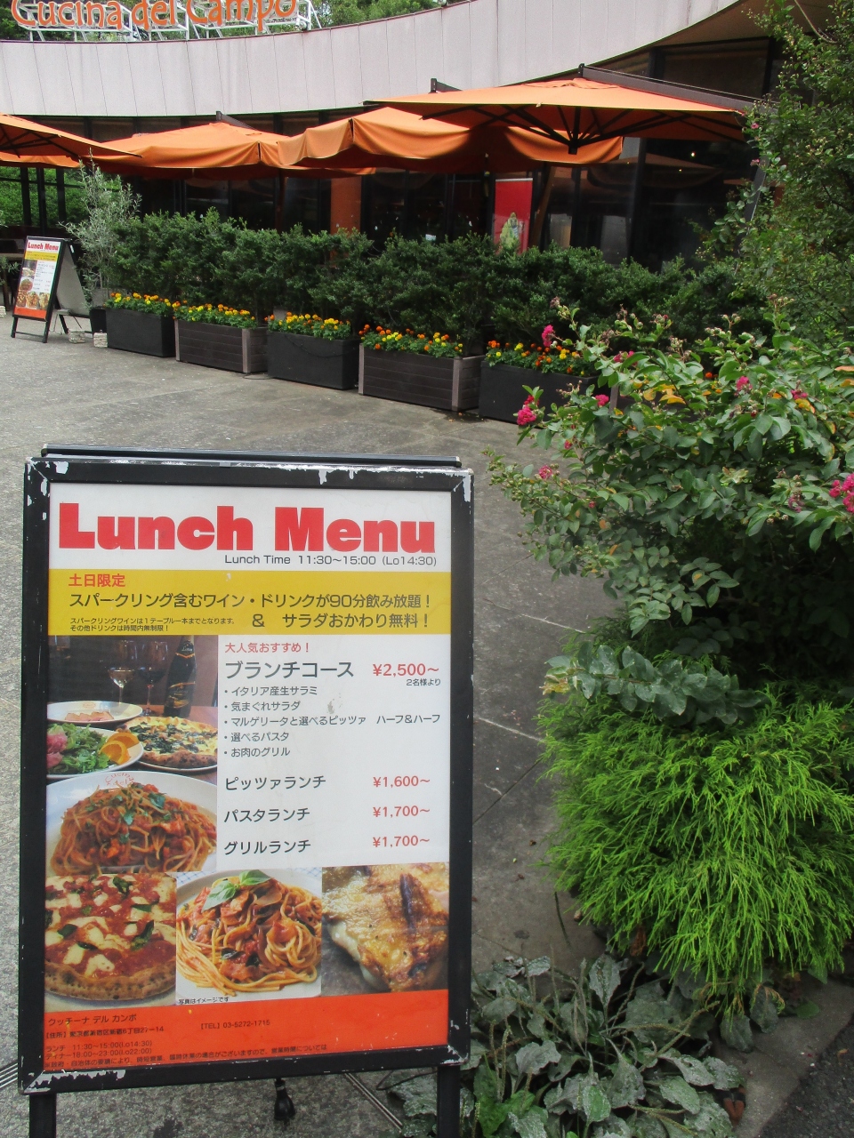 東京新宿の喧騒を離れて、広い敷地の中で、居心地よく、ゆっくりと食事ができます。気分はまさにイタリアンです。土曜日にランチに行ったら、スパークリングを含むワイン・ドリンク飲み放題、サラダ食べ放題だった。