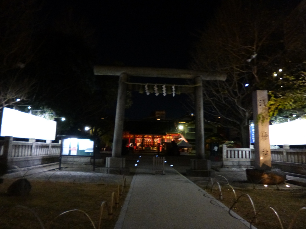 浅草寺本堂の北東側に浅草神社があります。三社祭が行われる神社としても有名です。浅草寺のライトアップを見るため夜訪問しました。浅草寺の本堂に比べると、控えめな灯りが本堂に灯っていました。境内も灯りが少ないので、こちらは明るいときに来たほうが良いと思います。