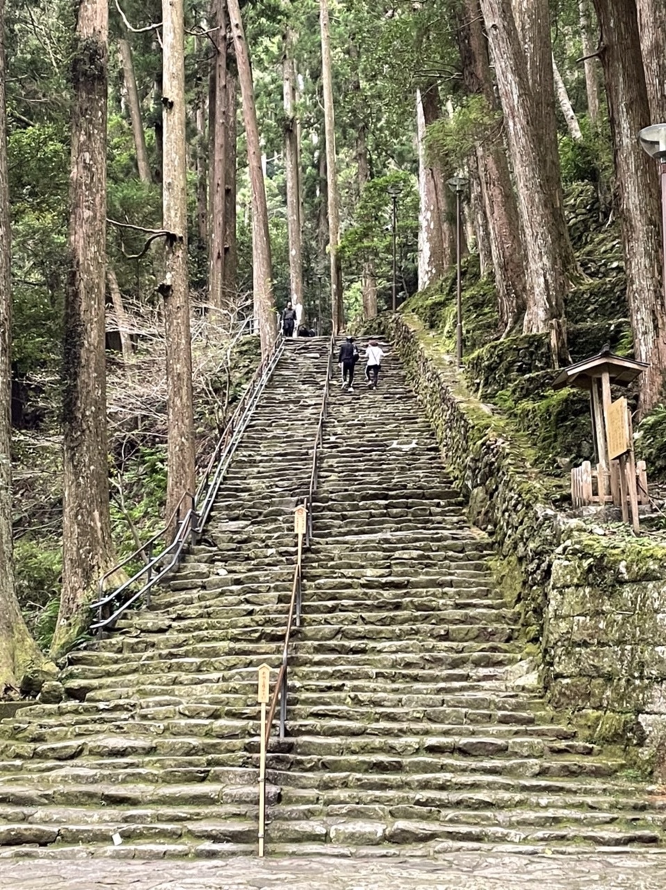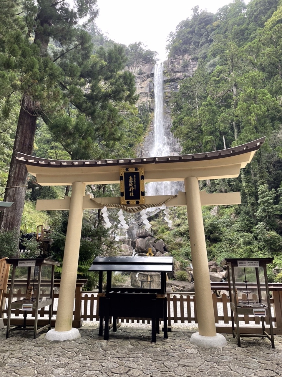 那智の滝を近くで見よう!と向かったら飛瀧神社がありました。那智の滝が御神体です。ここで見る那智の滝は非常に迫力がありました。無料で参拝できますが、300円払うと更に間近で滝が見れる御滝拝所に入れます。入場券がわりに(?)御守りを頂きました。有料エリアに入ると延命長寿のお瀧水が頂けます。飲むための神盃は200円でした。素焼きの真っ白な盃で素敵なデザインなので1つ購入し、記念に持ち帰りました。