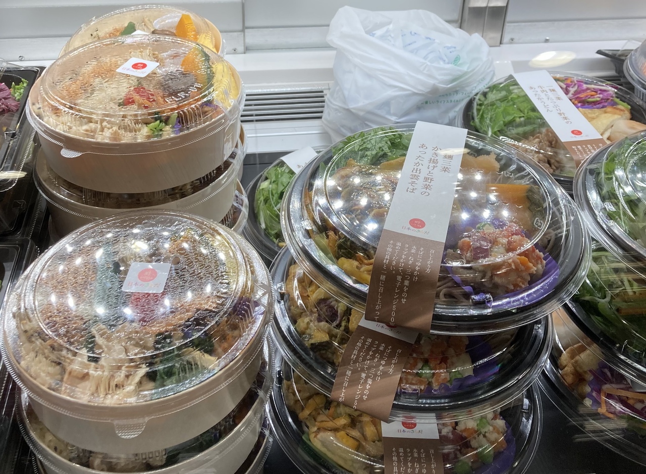 サラダやお惣菜というとRF1を思い浮かべますし、よく利用しますが、こちらはそれと同列会社の経営で、和食のお弁当などを得意としているので、この日も玄米のお弁当をテイクアウトしました。ご飯とおかずのバランスもとてもよかったです。