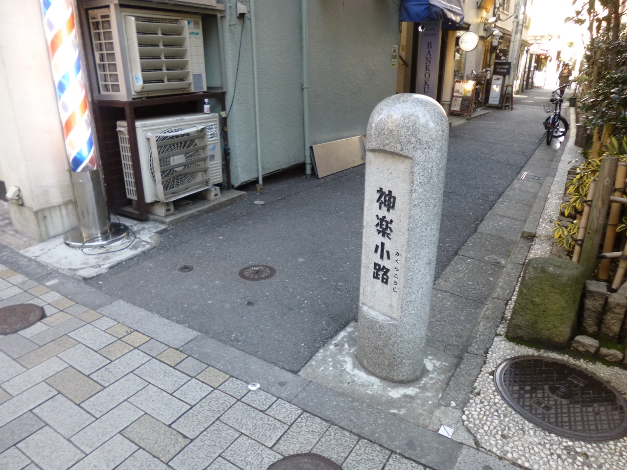 神楽坂下の交差点から神楽坂に入ってすぐのところ右手に神楽小路の入り口があります。いつも割と人通りのある通りです。数十メートルの通りですが、小さな飲食店が並んでいます。神楽小路を進んでいくと、右手にみちくさ横丁という昔懐かしい感じの看板が見えてきます。こちらのほうがさらに昭和レトロ感を味わえます。