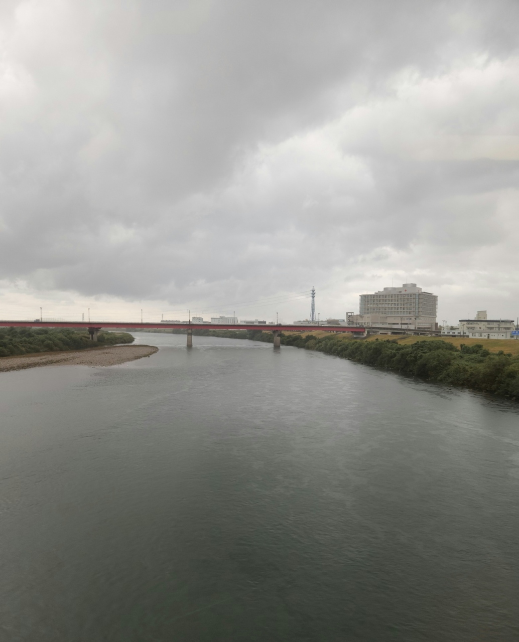 高岡へ向けて電車にのるとすぐに見えてきます、この時はあいにくのお天気だったので風景はイマイチですが大きくて昔よりはずっと綺麗な川になっていました。