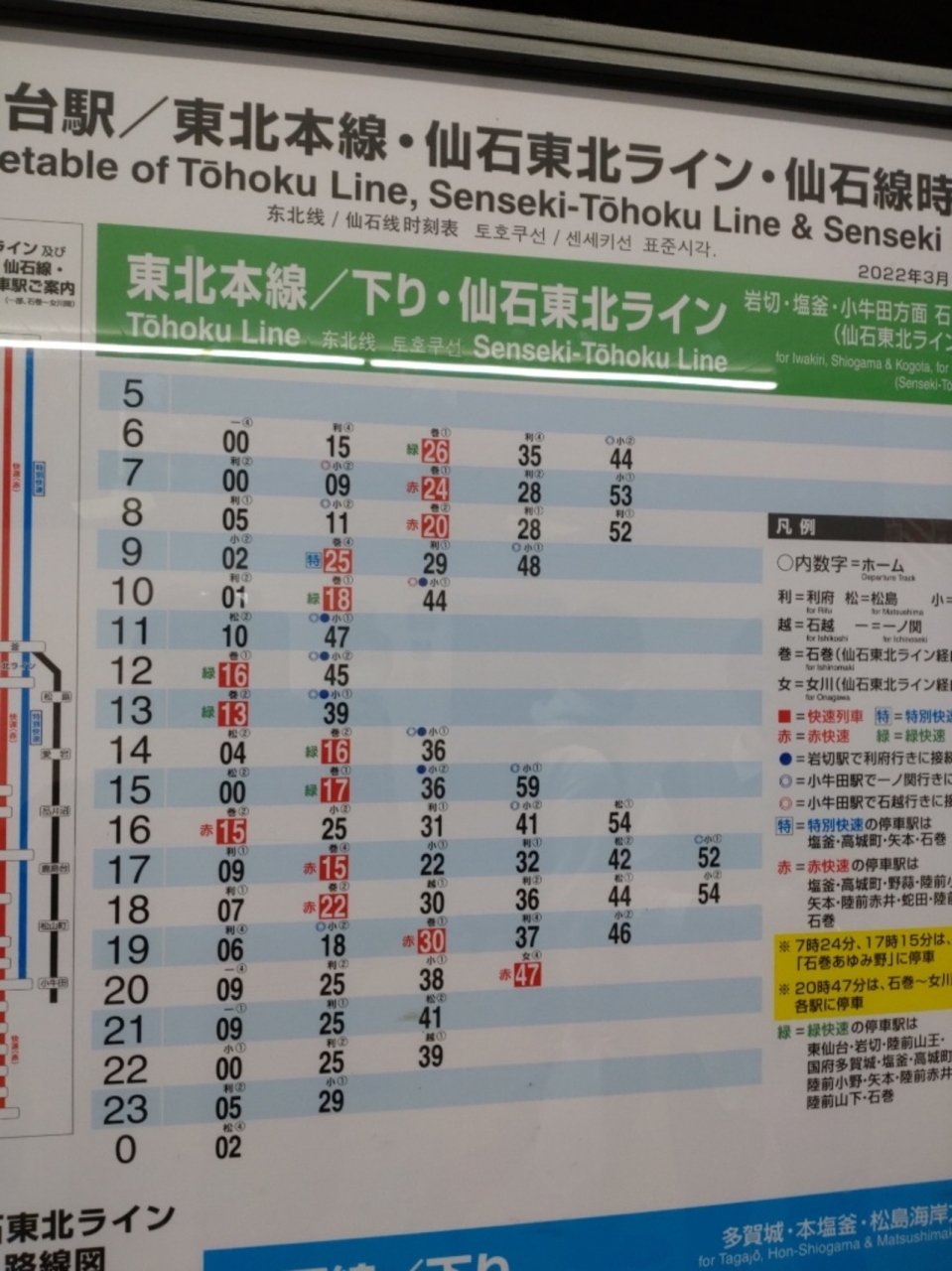 仙台駅から石巻·女川まで結ぶ路線です。東北本線ホームから走ります。松島海岸は通らずに行きます。早いし、便利なので混雑していました。地元民だけでなく、石巻まで行く人達も乗っています。復興のために路線が繋がり、感慨深いものがあります。