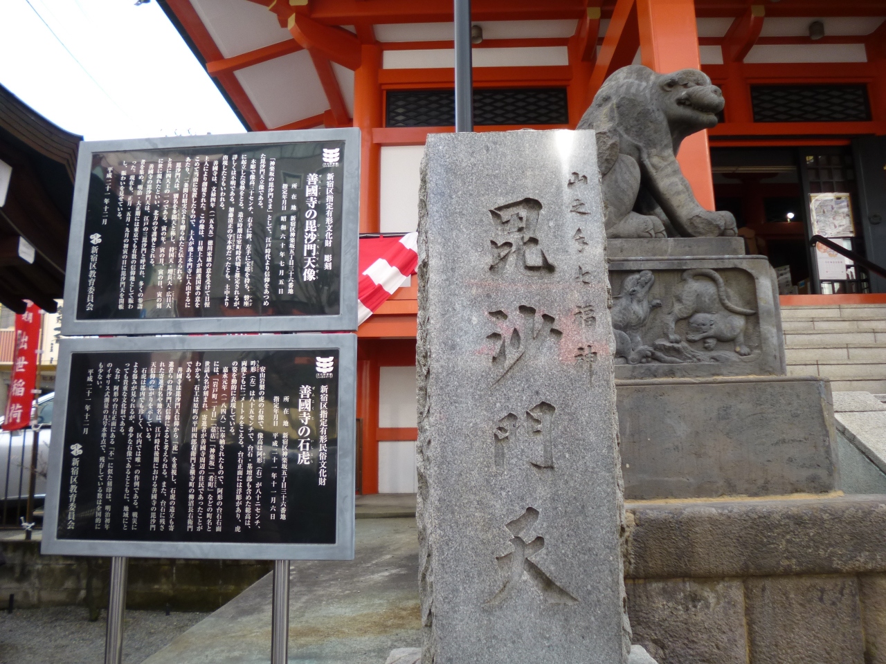 善国寺の本尊の毘沙門天は寅の年、寅の月、寅の日、寅の刻にこの世にお出ましになったことから、寅毘沙と呼ばれるそうです。そのため本堂の左右には石虎が鎮座しています。左阿川の石虎は戦災にあったそうでその跡が感じられます。江戸後期の作といわれています。狛犬の代わりに虎がというのはとても珍しいと思いました。