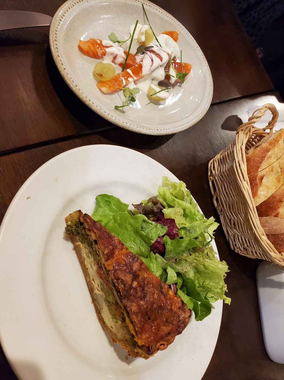 神楽坂商店街の坂から路地に入ったところにある、フレンチビストロです。ランチコースがおすすめです。ガレットが美味しいお店ですが、前菜、メイン、デザート、ドリンクをチョイスできます。前菜のキッシュが美味しかったです。メインもガレットや、肉魚がありボリューム満点で、とても美味しいかったです。圧巻なのが、デザートのクレープです。お皿からはみ出そうな、大きなクレープで、ソースが何種類かありました。お店の雰囲気もパリです。