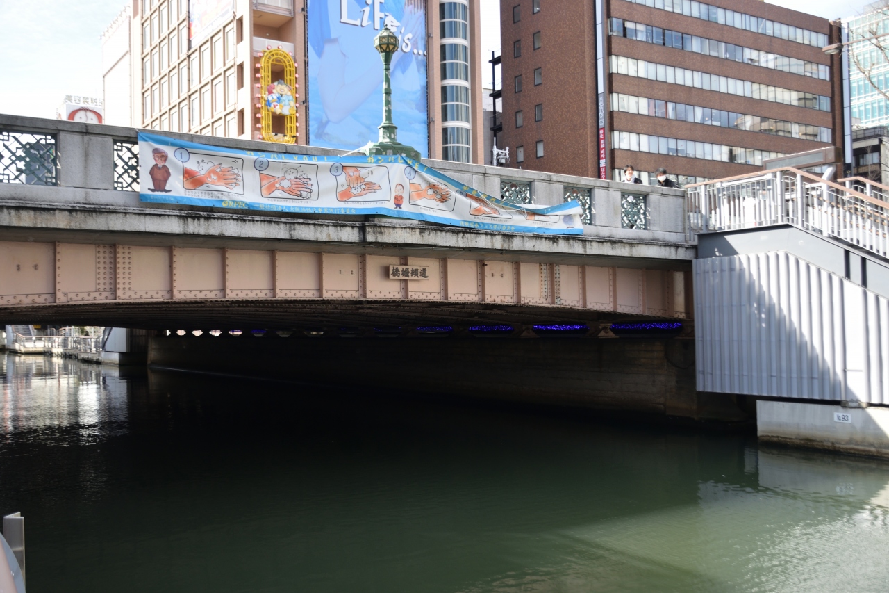 大阪市内を縦断する国道26号線は心斎橋やなんばなどを通るメジャーな通りです。その国道26号線が道頓堀を渡る橋が道頓堀橋です。小さな川なのできづかずに渡ってしまうことも多いですが、観光名所を通るポイントでもあります。