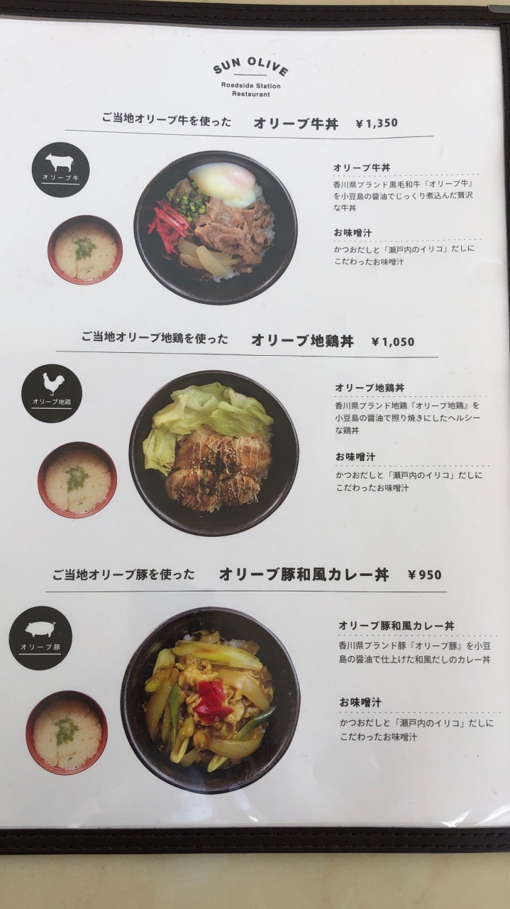小豆島にある道の駅です。温泉施設やレストランなどがあります。建物が丘の上にあるので、海やオリーブ畑の眺めが良いです。レストランでは、オリーブ牛丼1350円を食べました。肉の量がもう少し多いと満足でした。