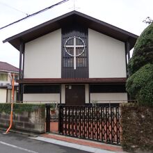 男子修道院が併設された教会で、かなり広い敷地の中に、今井兼次が設計した木造の聖堂が見物です。勝手に中に入っていけないので、外観だけの見学となりました。