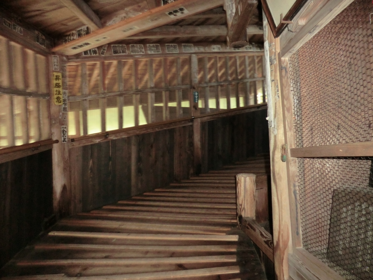 さざえ堂の向かいにチケット売り場があり、入場券になるしおりを貰います。土足で見学ができますが、木造なので維持が大変だろうと思いました。ヒールの女性は、上るよりも下りる方に苦戦していました。あっという間に出口に辿り着いてしまうので物足りなさがありました。