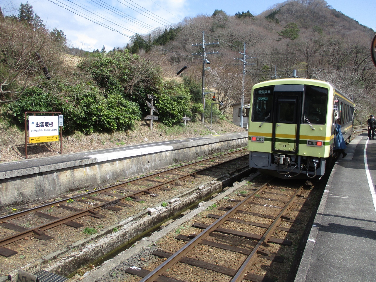 宍道駅を発車する時点では2両編成でした。ここから約3時間かけて、備後落合駅へと向かいました。木次線の車窓からは、山間部の集落など長閑な風景が楽しめました。長閑な風景から一変して、路線名の由来にもなっている木次駅の周辺では赤い屋根瓦の家屋など特徴的な建物が多く見られました。