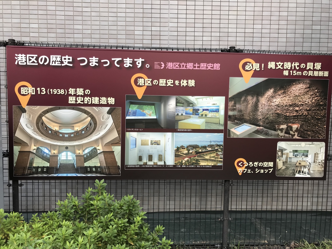 メインは鉄道開業150年のイベントでしたが、港区について学べました。施設には無料で入れますが、展示閲覧する場合有料です。当時は新橋から横浜まで1時間かかったようで、明治天皇が開業イベントに出席した絵がありました。特別にプラレールも展示されました。普段も入れるエリアになりますが、貝塚がたくさん見つかったり。おぼっちゃまやお嬢様の私立がたくさん存在するなど港区について知ることができました。