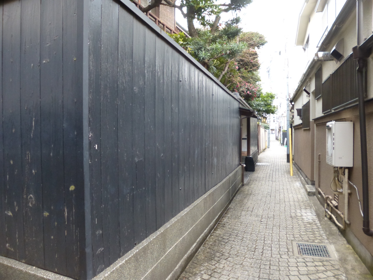 神楽坂上から神楽坂通りを下ってくると、善国寺が見えてきます。通りを挟んで向かい側に本多横丁の入り口があります。横丁の中でも一番大きい本多横丁を歩いていくと、小さな路地の入口が。ここからがかくれんぼ横丁です。黒塀に囲まれた日本料理のお店や、素敵な日本家屋だけどフレンチやイタリアンというギャップも面白い通りです。