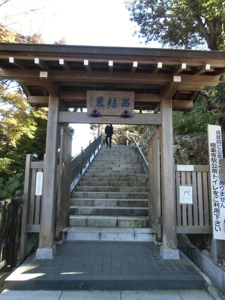 極楽寺切通し脇の片方の崖の上にあるので、訪れるのに結構な石段を登ります。