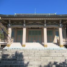 閑静な住宅地に建つ浄土宗の寺院です。幼稚園も経営している寺ですが、境内は松やイチョウなどの木々が生い茂っていて薄暗く感じられました。境内には石の彫刻も点在していましたが、無造作に置かれていて彫刻の素晴らしさが感じられませんでした。ドアが薄緑色で壁がクリーム色をした鉄筋コンクリートの本堂が印象的な寺です。