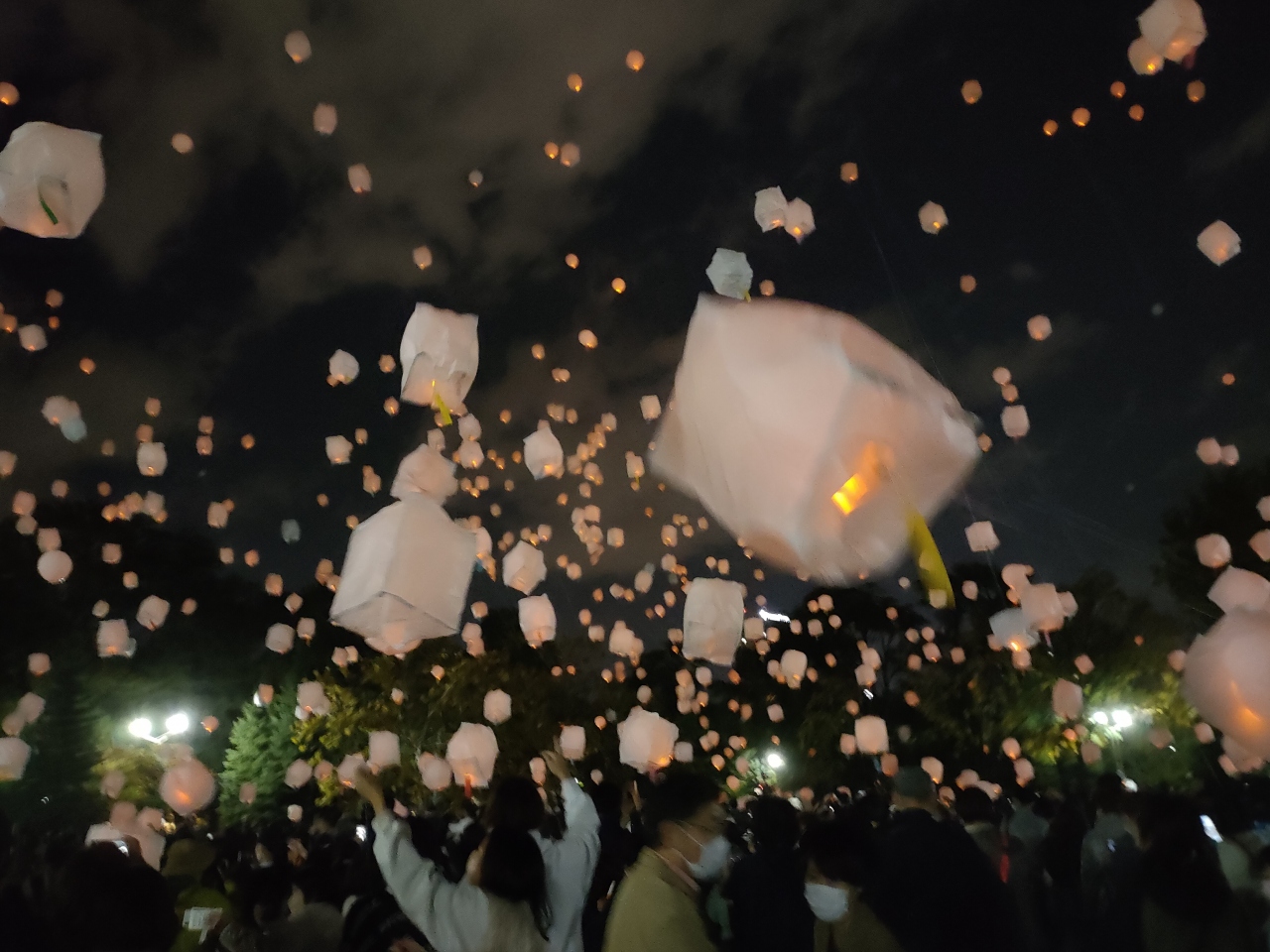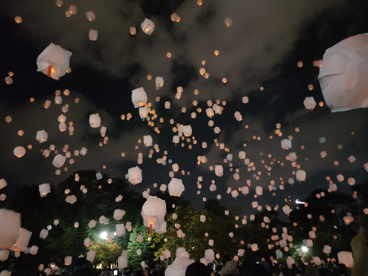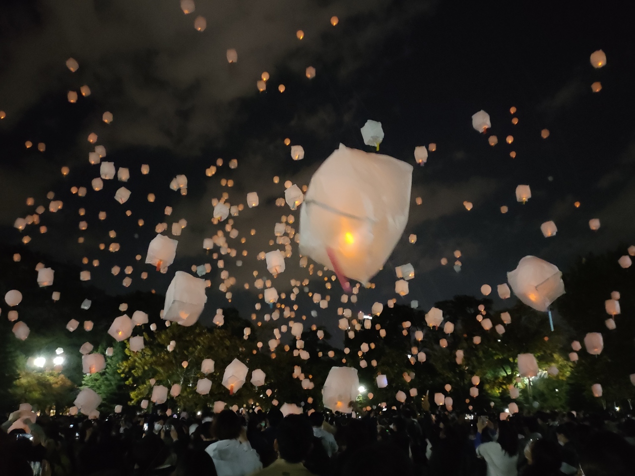 打ち上げたランタンは自由にもらえるようでしたが、途中で放置することのないよう、後始末は各自責任をもってほしいとの案内がかかっていました。もっとも、空中に浮遊するランタンを持ちながら混雑する地下鉄車内に乗り込むのもちょっと気が引け、可能なら車でアクセスするとよいイベントかもしれません。