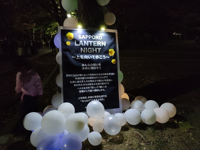 イベントも終盤に近付くと、最寄りの地下鉄駅の混雑を懸念してか、帰りだす家族連れも多くなり、終了前に既にぞろぞろとランタンを持った行列が中島公園駅までできていました。なお、駅までの距離としては幌平橋駅の方が近い場所ではあります。