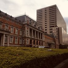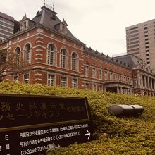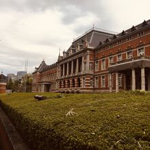 横長の建物で一際目立った外観でミニチュアを大きくしたような感じに見えました。館内に資料館があり無料で見学することが出来ます。旧本館という名ですが現役の建物で、警備が厳重でした。建物前は空間になっています。