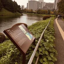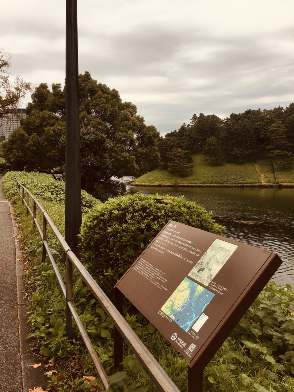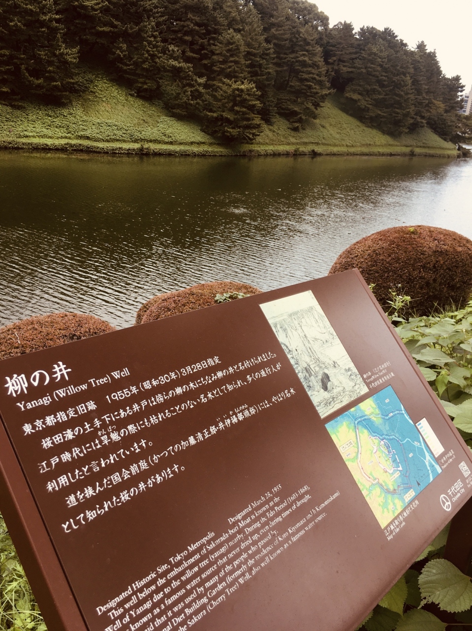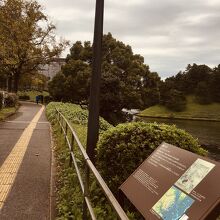桜田濠の上にあり歩道沿いに看板がありました。看板以外は何もなく草が生えていて井戸もなかったです。説明文の他に当時の絵と江戸城を取り巻く地形が描かれていました。坂道沿いにあり散歩やランニングしている人が多い場所にあります。