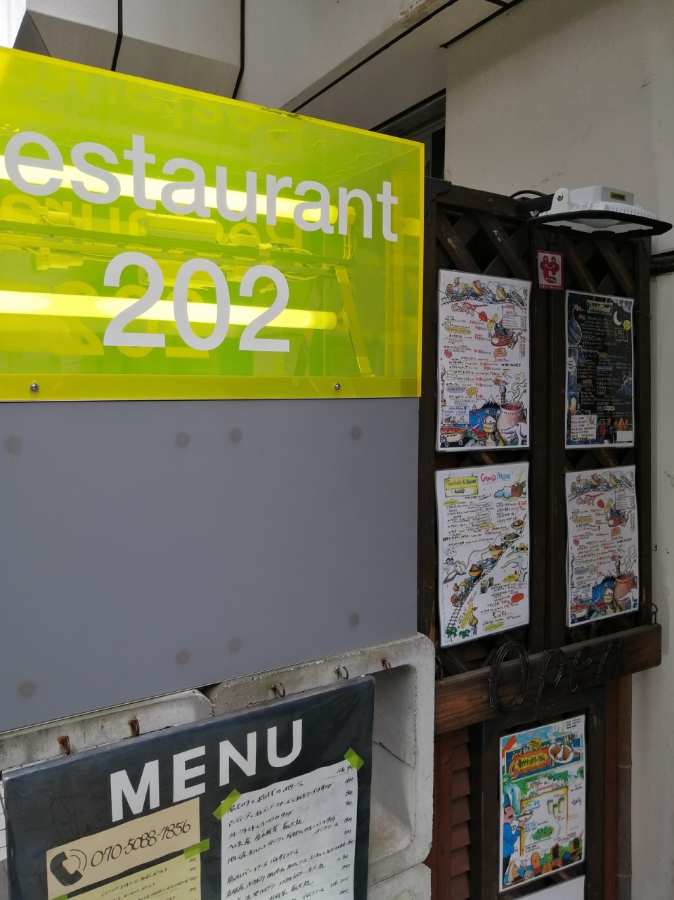 場所がわかりにくいですが、線路沿いに歩いて、画像の看板が見えたら2階に上がります。