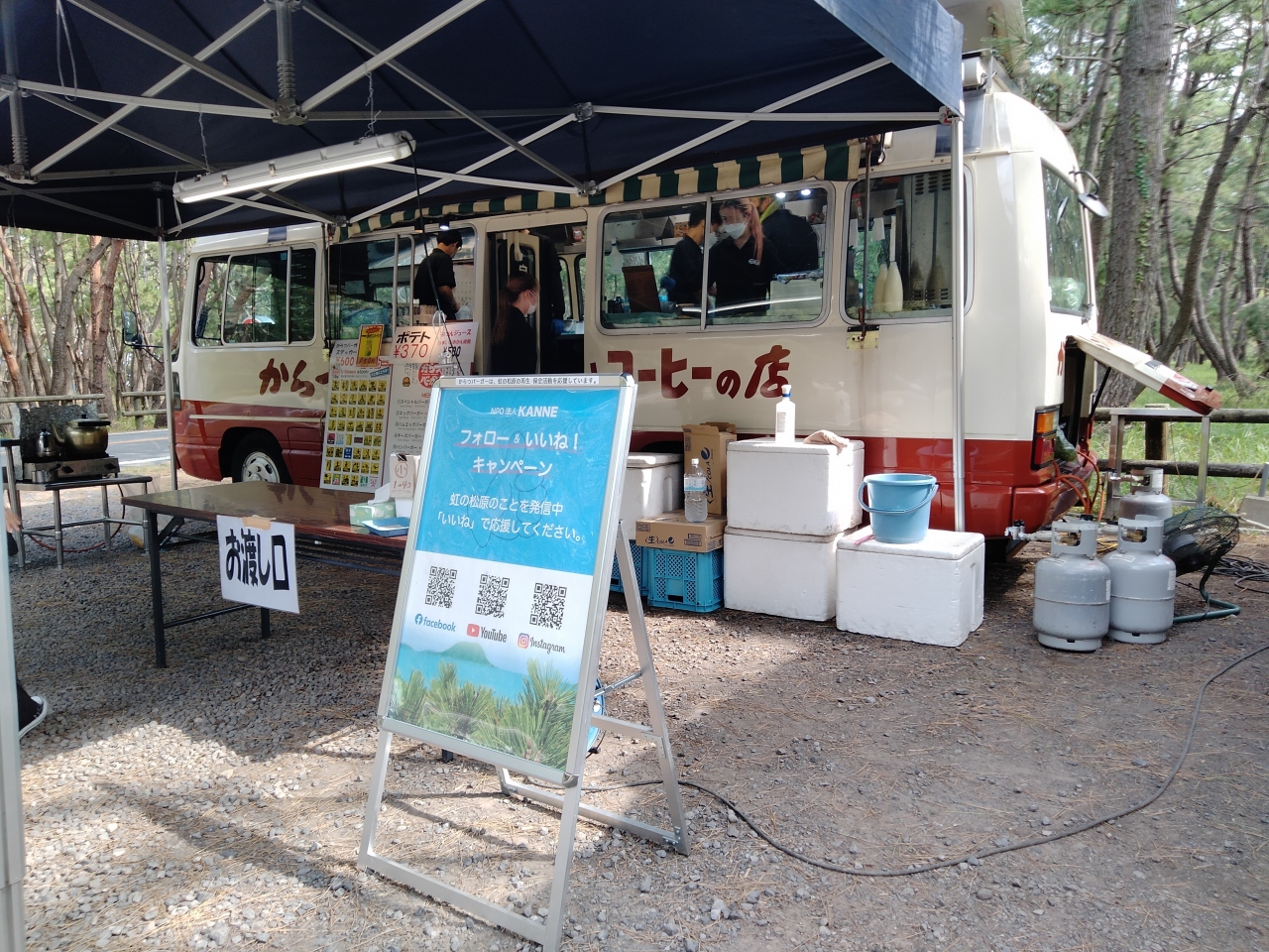 お店はマイクロバスでバイクのライダーを中心ににぎわっていて、私が行ったときはすんなり食べれましたが、帰る頃には行列ができていました。