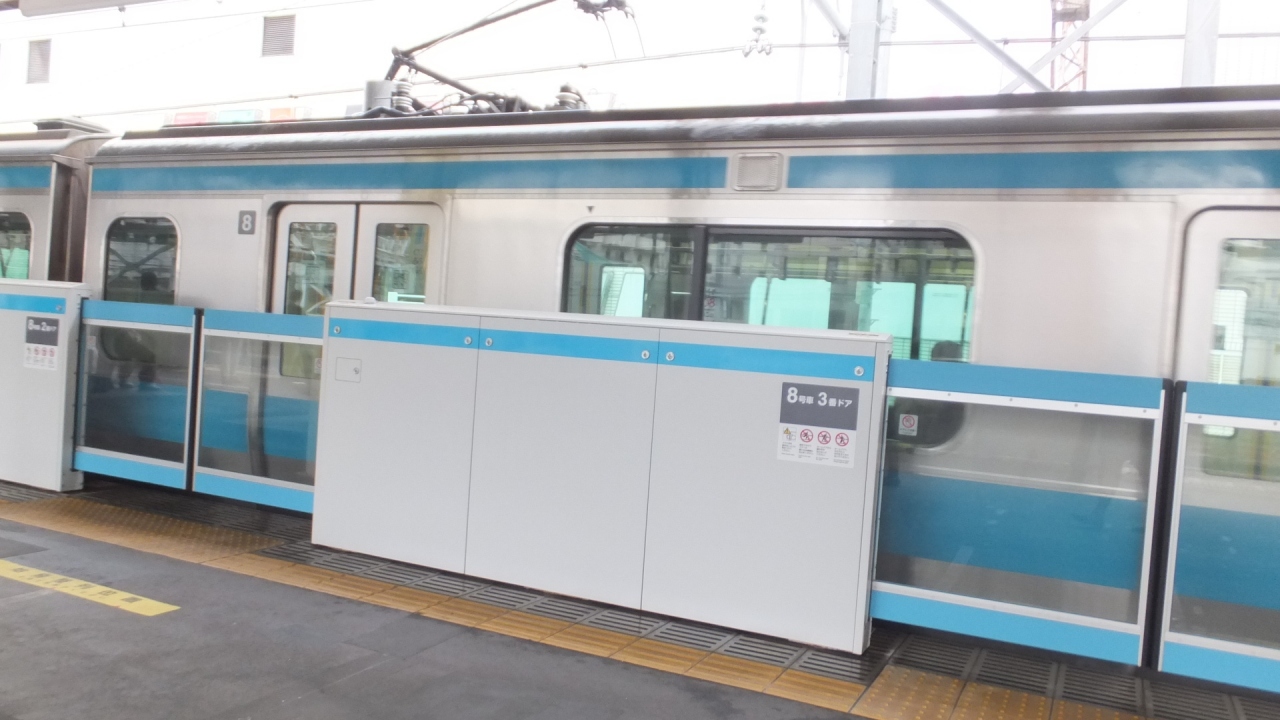 神奈川県の大船の駅と埼玉県の大宮の駅までを結ぶ路線ですが、本来は神奈川県の横浜駅までで、その先は根岸線と一体型だそうです。途中東京都も通り、なかなか長い距離ですね。シルバーの車体にスカイブルーのライン。利用した駅は、ホームドアもあって安心でした。