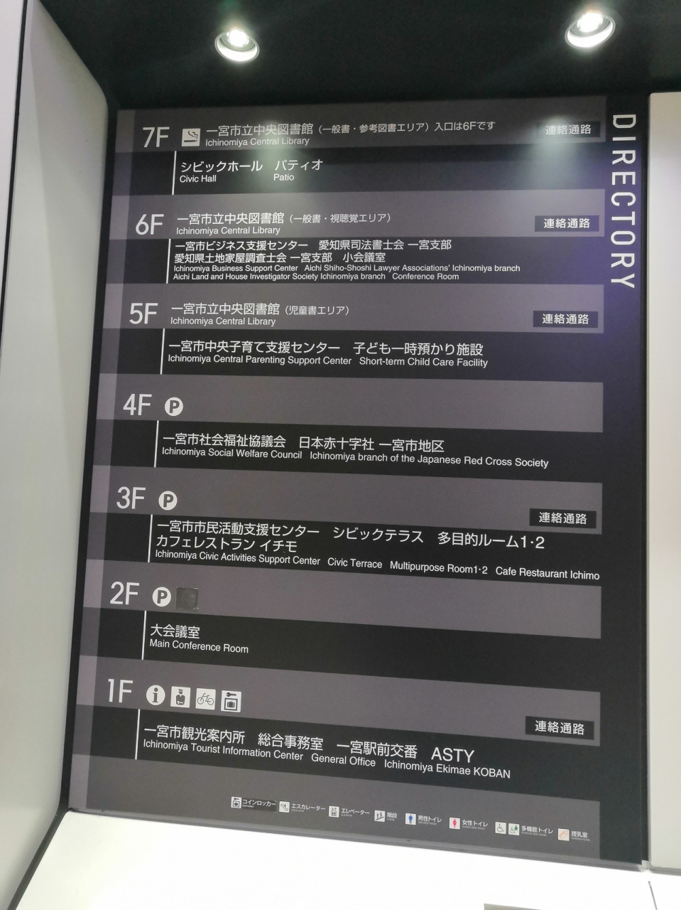 JRと名鉄の一宮駅に直結の複合ビルです。市民活動に関する施設や図書館などの公共施設もありますが、観光客が利用する場所としてはインフォメーションセンターがこちらにあります。商業施設も結構テナントがあるので便利です。