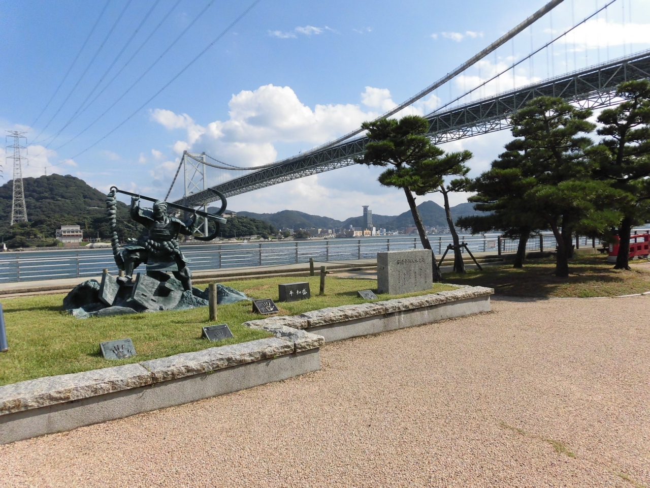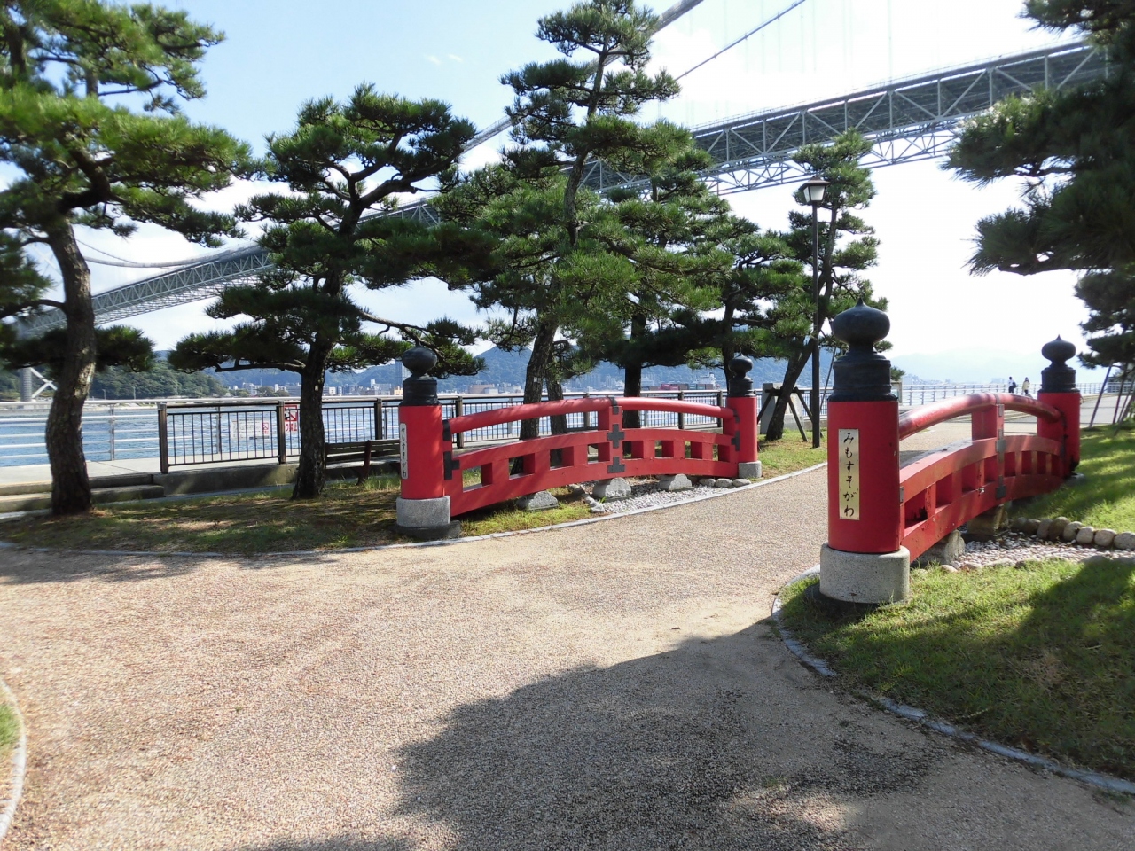 下関を観光で訪れたときに、関門橋見物の時に立ち寄りました。関門海峡を望む海際の場所にある公園なのです。向かい側に本州が見えて景観は抜群です。源平合戦の時に、安徳天皇や女官たちが入水にて亡くなったことから、公園の名前が付けられているようです。確かに目の前に急流が見えて、当時の様子も想像できる公園でした。、
