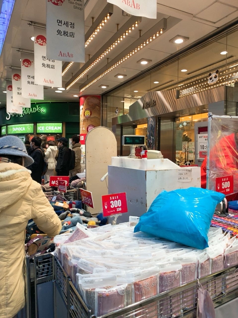好きな洋服屋さんがある以外に、エントランスで色々なワゴンセールをやってます。 季節ごとに扱うものも違うのですが、今回は色々な種類の不織布マスクが売ってて、カワイイ柄や色の物もあって、いくつか買いました。 お得に買い物するなら、上野駅や御徒町駅からも近いのでオススメです!