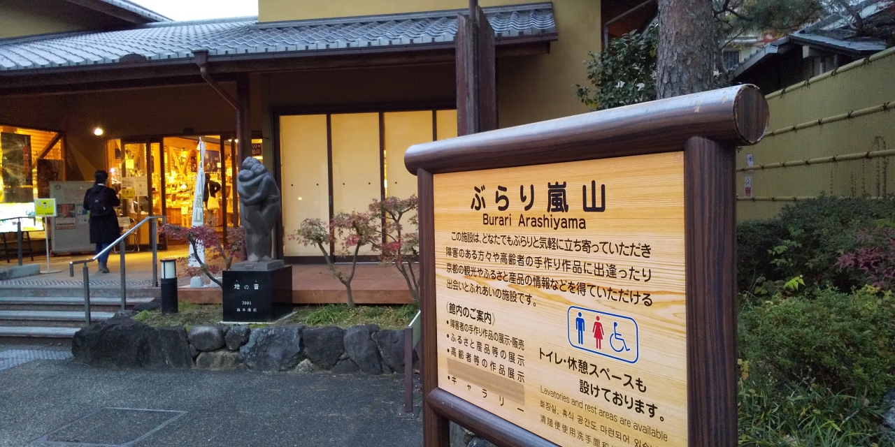 京福嵐山駅から歩いて約2分の観光ストリートの中にあります。