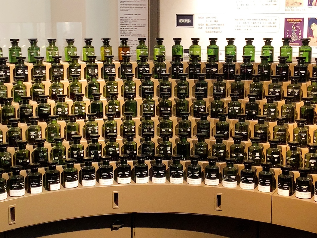 学生の頃にオシャレで身に付けたオードトワレから、濃厚な香りの香水まで、色々と展示されています。