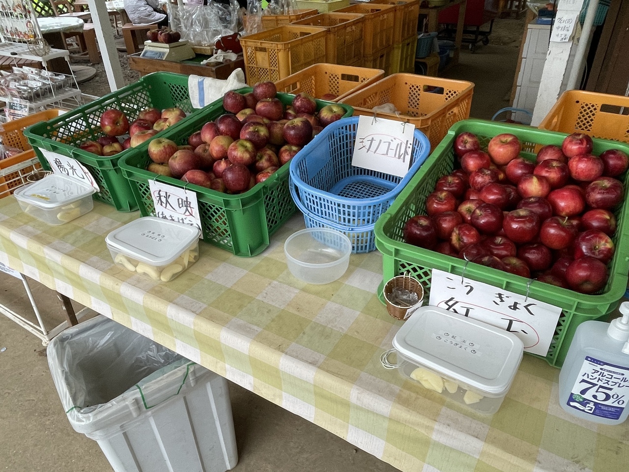 平日も人が出ていて人気の様子が分かりました。10月下旬は陽光と紅玉と秋映、シナノゴールドでどの品種も握りこぶし程度の小ぶりなものでした。並べて販売されていた利根町の洋菓子店製のアップルパイがりんごたっぷりでおいしかったです。