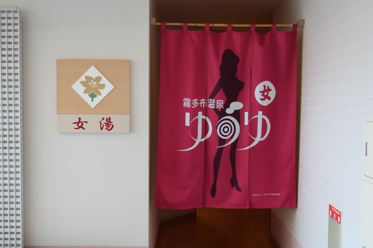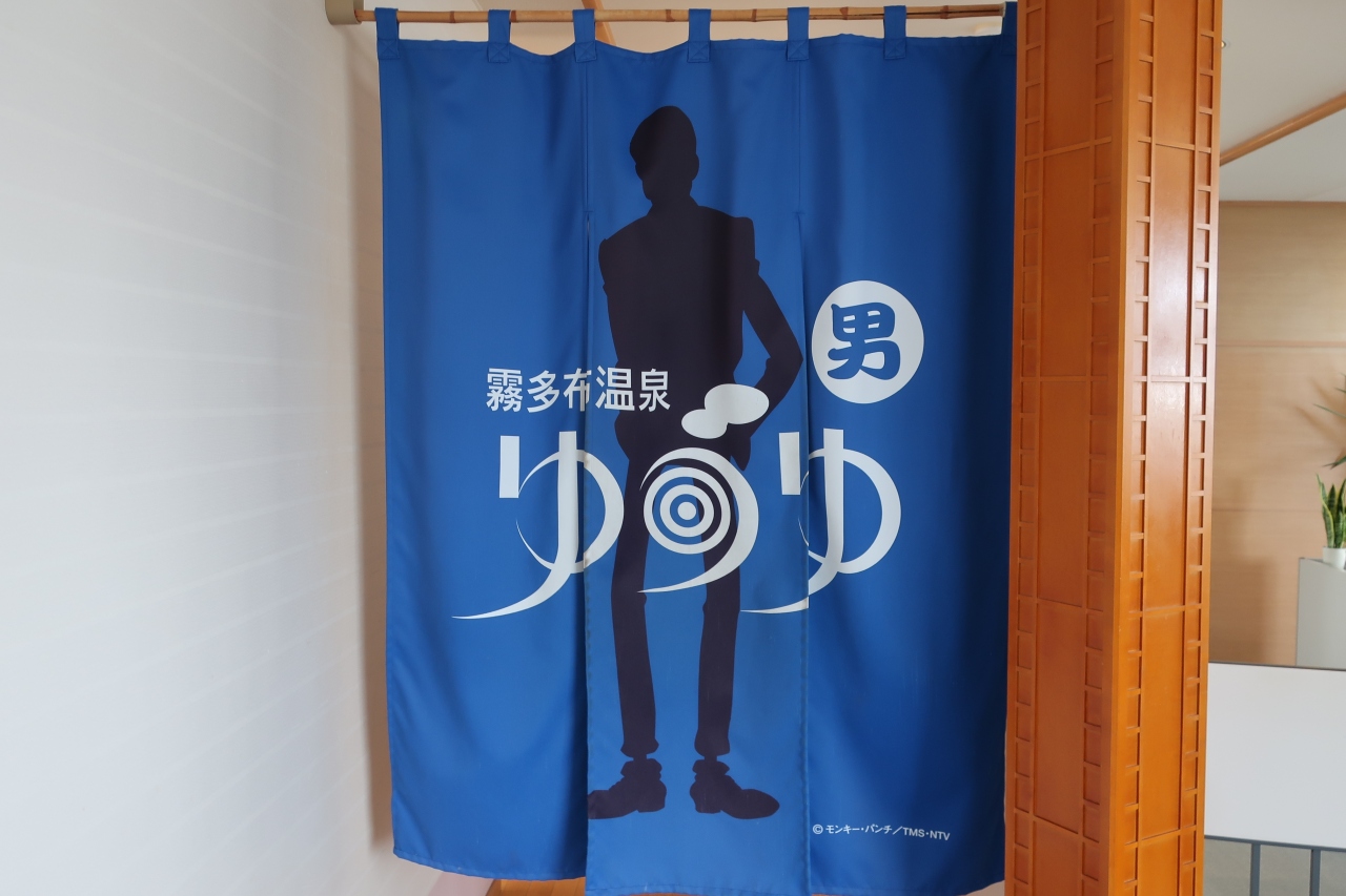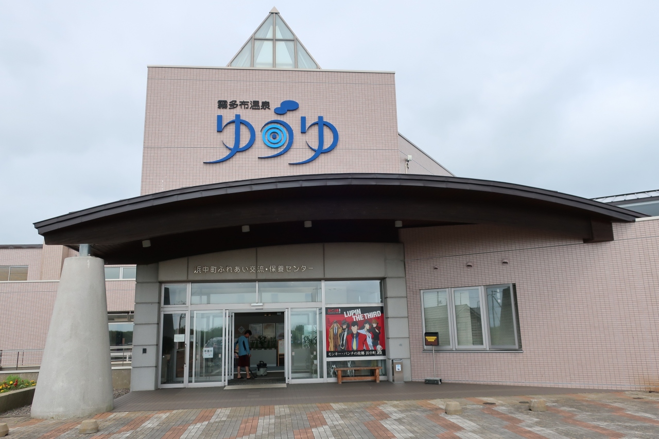 霧多布の高台にある日帰り温泉施設です。霧多布キャンプ場の受付はこちらです。モンキー・パンチの生まれ故郷だそうで、ルパン三世グッズがたくさんありました。暖簾はルパンと峰不二子でした。泉質は冷鉱泉。子供が遊べるスペースやレストランがあり、ファミリーにもいい温泉施設だと思います。