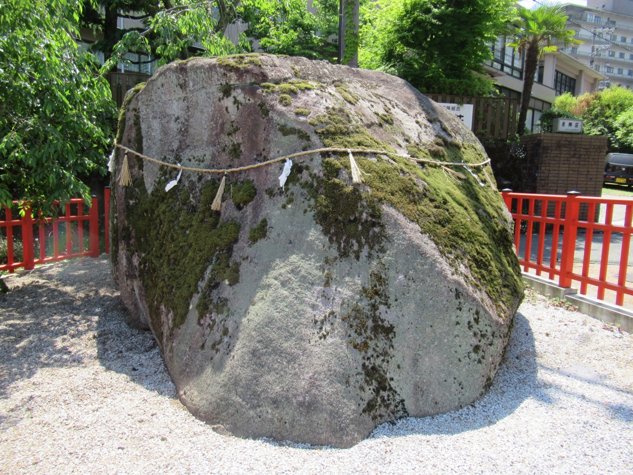 「ある時、熊野久須美命が狩場を通られた際に、松永たんぽぽ城主が葦毛の馬に乗り、重藤の弓と白羽の弓と白羽の矢を持って、鷹狩をしていました。松永城主は怪しく思って熊野久須美命を射ようとしました。熊野久須美命は袂から松永城主に向って小石を投げつけられました。この小石が年月を経て大きくなりました。」