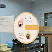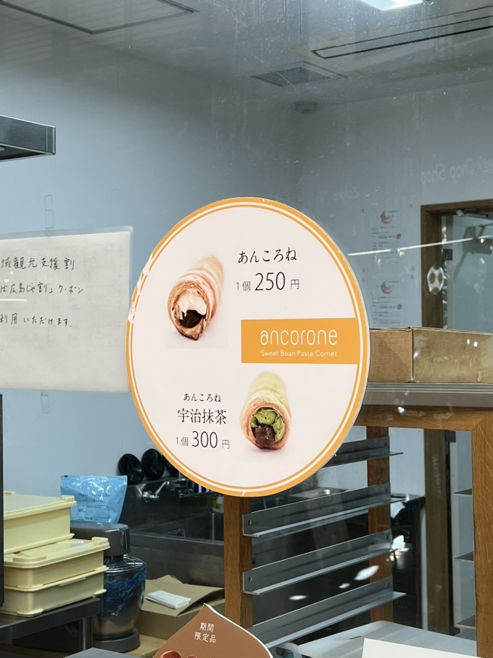 宮島の表参道商店街の中間ぐらいにある創作和菓子屋さん。本店は宮島口のフェリー乗り場にあるこちらは支店です。あんころねと言うパリパリ生地にあんこが入ったお菓子が250円、抹茶あんころねが300円です。創作和菓子としては手頃な値段で厳島神社に向かう際に手軽に食べられて美味しかったです。