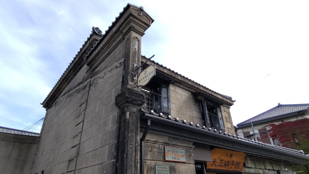 火災時に隣接する建屋(現存しない)からの延焼を避ける為、防火用の袖壁(うだつ)がありましが、同じく歴史的建造物の旧早川支店にそれにくらべ彫刻などが入っていないので、少々物足りない感じでした。