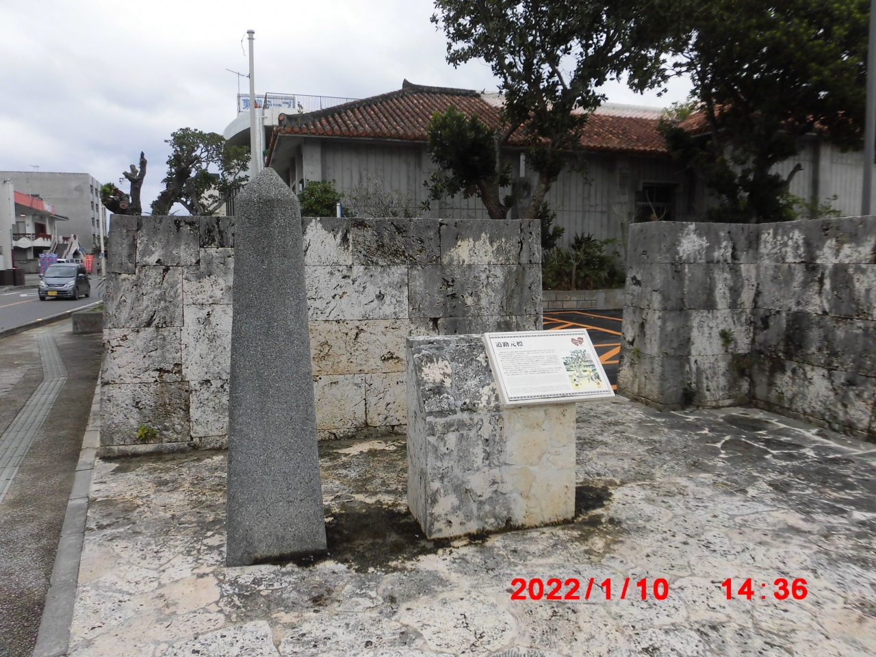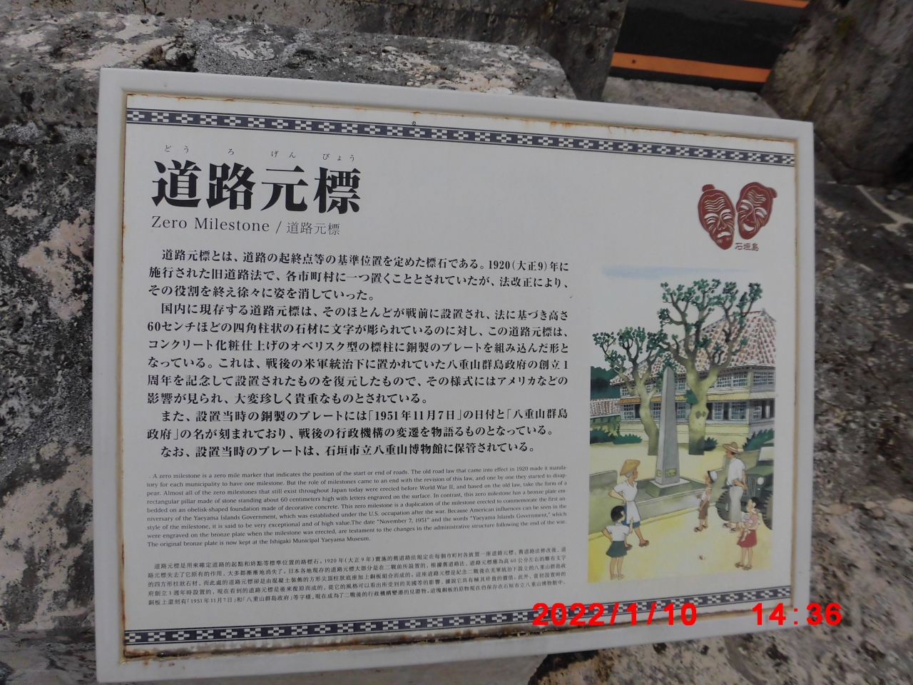 石垣島観光で立ち寄りました。八重山群島政府「道路元標」は、390号線沿いにあり、八重山島蔵元跡、八重山群島政府道路元標、石垣市立八重山博物館と並んでいる中央にあります。道路元標とは、道路の起終点等の基準位置を定めた標石で、各市町村に一つ置くこととなっていたそうですが、法改正により、その役割を終え徐々に姿を消しているとのことです。