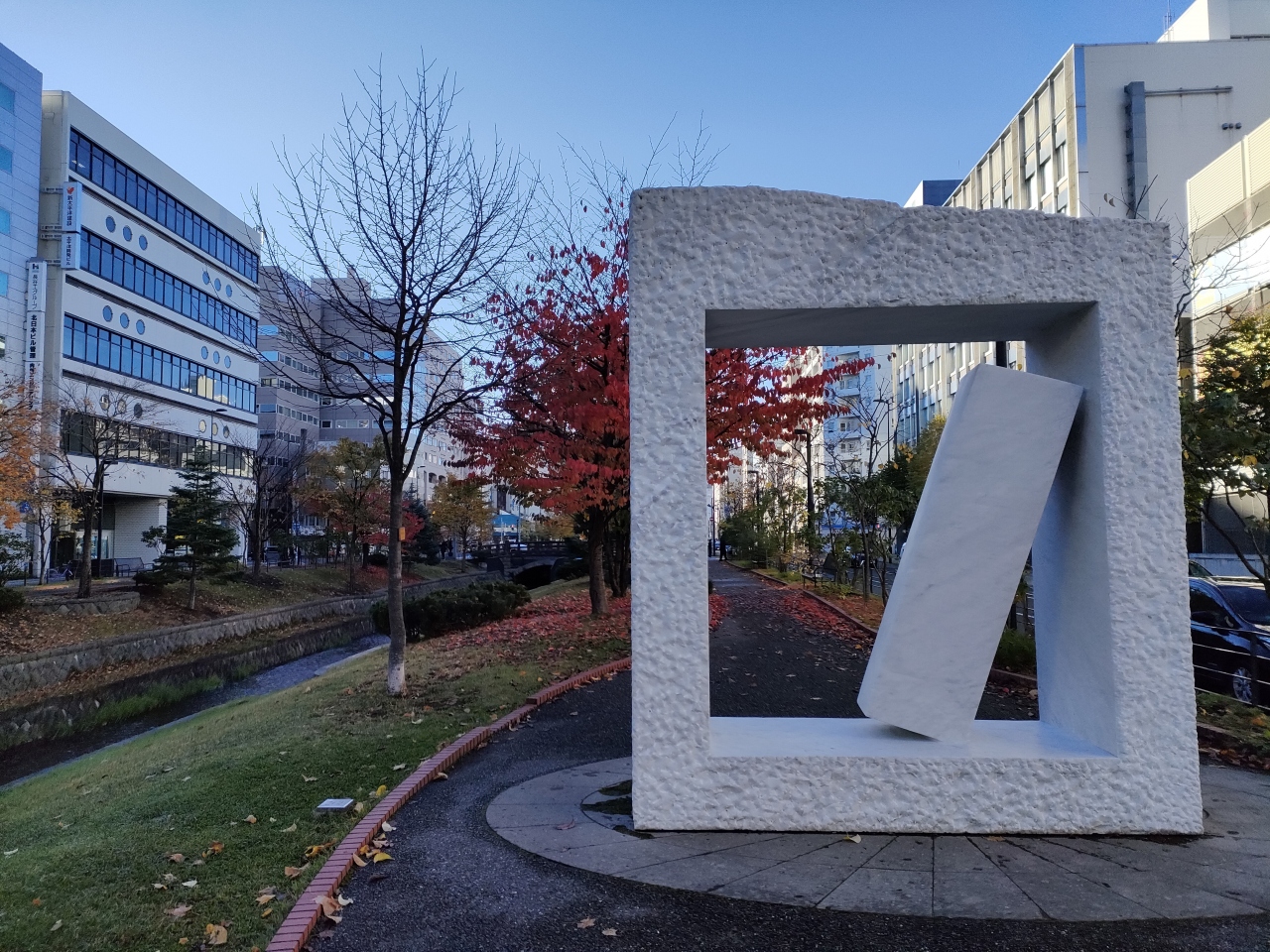創成川沿いの創成川公園には、ほか多数の安田侃氏のアート作品があり、形状的に作品に腰かけるなどして、疲れた時にちょっと休憩するのにも使えます。