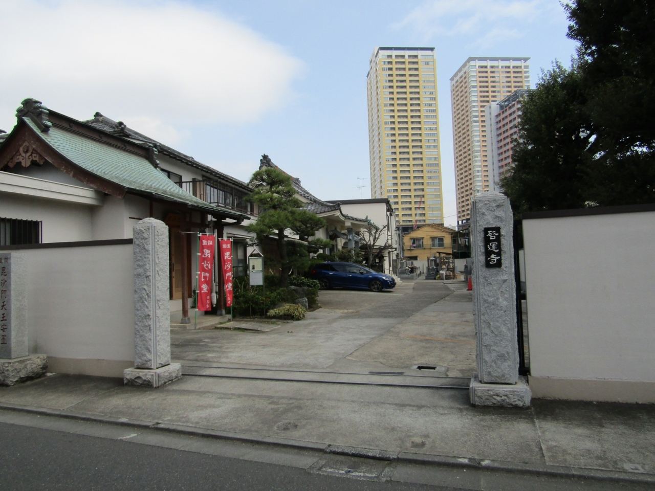 本堂はコンクリート造りのうえ入口は鍵がかかりお参りできなかったが、本堂の脇にある毘沙門堂には七福神の一柱の毘沙門天が祀られていて、五穀豊穣や商売繫盛、家内安全などにご利益があるとされ、信仰されているようでした。