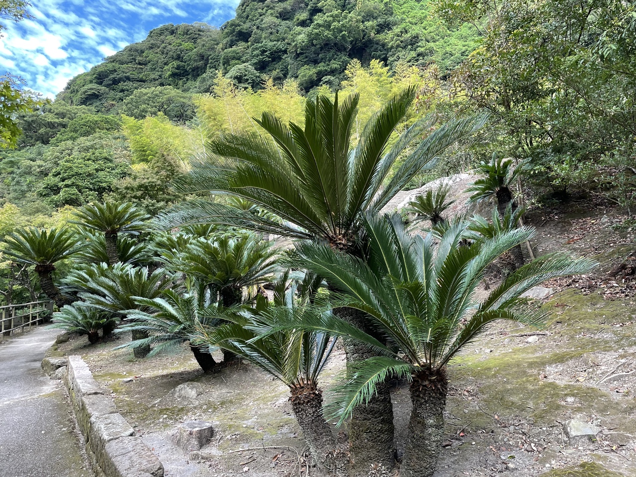 御殿については前回見学済みなので今回はパス。庭園散策と桜島の眺望がメインとなりました。桜島は御殿の前と仙巌園の一番奥(東側)の小高くなった所からよく見えます。個人的に好きな場所は、竹林へ上がっていく石階段です。まるで城のような雰囲気で、大河ドラマの篤姫や西郷どんでも撮影に使われたそうです。
