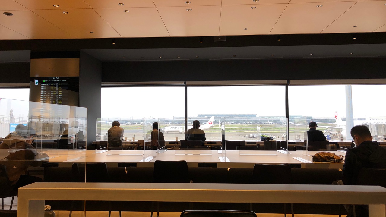 羽田空港にあるクレジットカードラウンジです。第1・第2ターミナルともに、保安検査後の搭乗待合エリアにあります。出発・到着、どちらでも利用できます。50席以上あるような、広々としたラウンジです。窓から飛行機・滑走路がよく見えます。