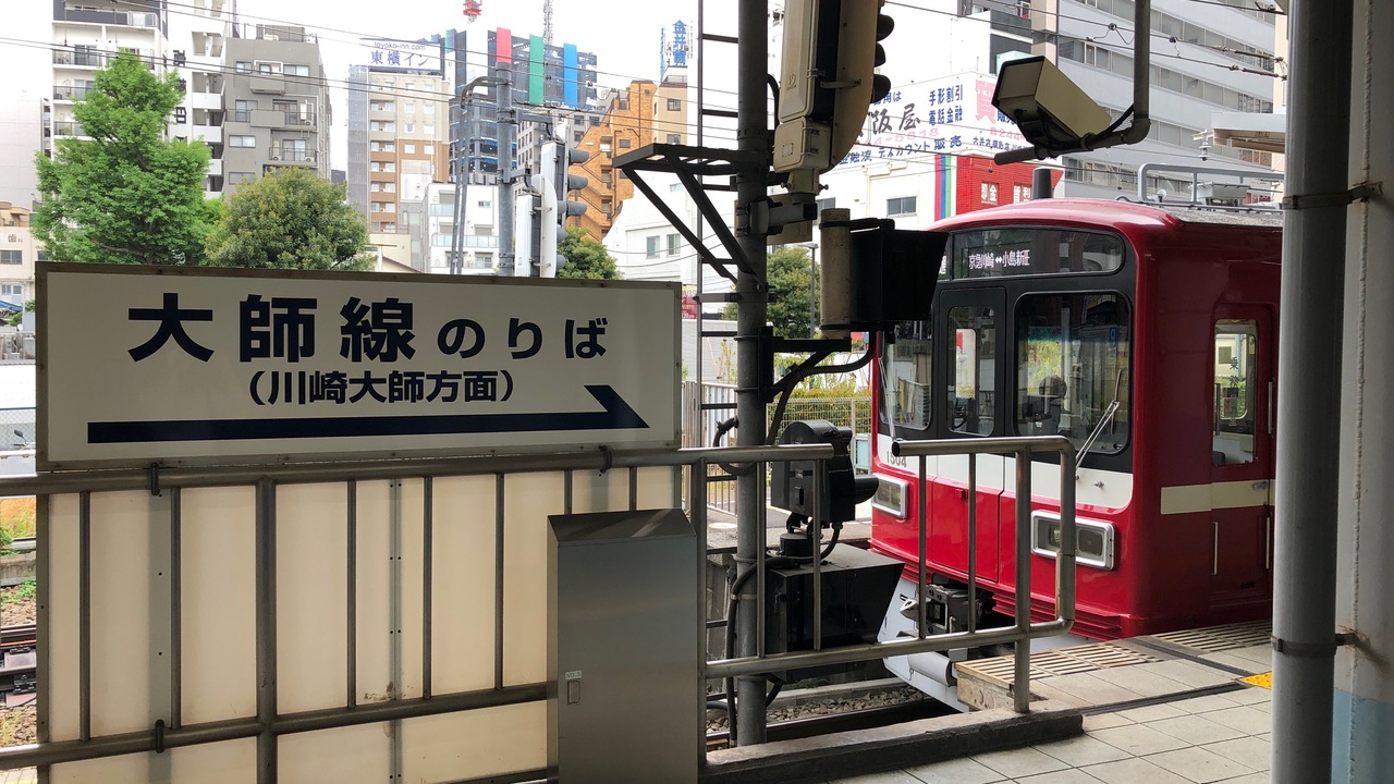 京急川崎~小島新田駅を結びます。大師線という名前のとおり、途中に、川崎大師駅があります。川崎大師駅を降りると、川崎大師までの商店街が続き、名物・くず餅を売る店などが建ち並んでいます。川崎大師駅以外は、工業地帯の駅といった雰囲気です。