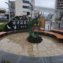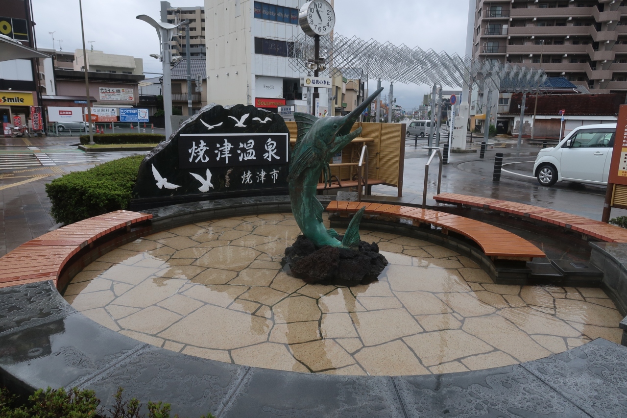 焼津駅のすぐ前にカツオの像を真ん中に誂えた足湯スポットがありました。せっかくなので靴を脱ぎ入ってみたところ、驚きの熱さでびっくりしましたが、内側のほうは普通の熱さでした。ご近所住みらしきおばさまは、外側の方が熱くてイイとおっしゃってました。