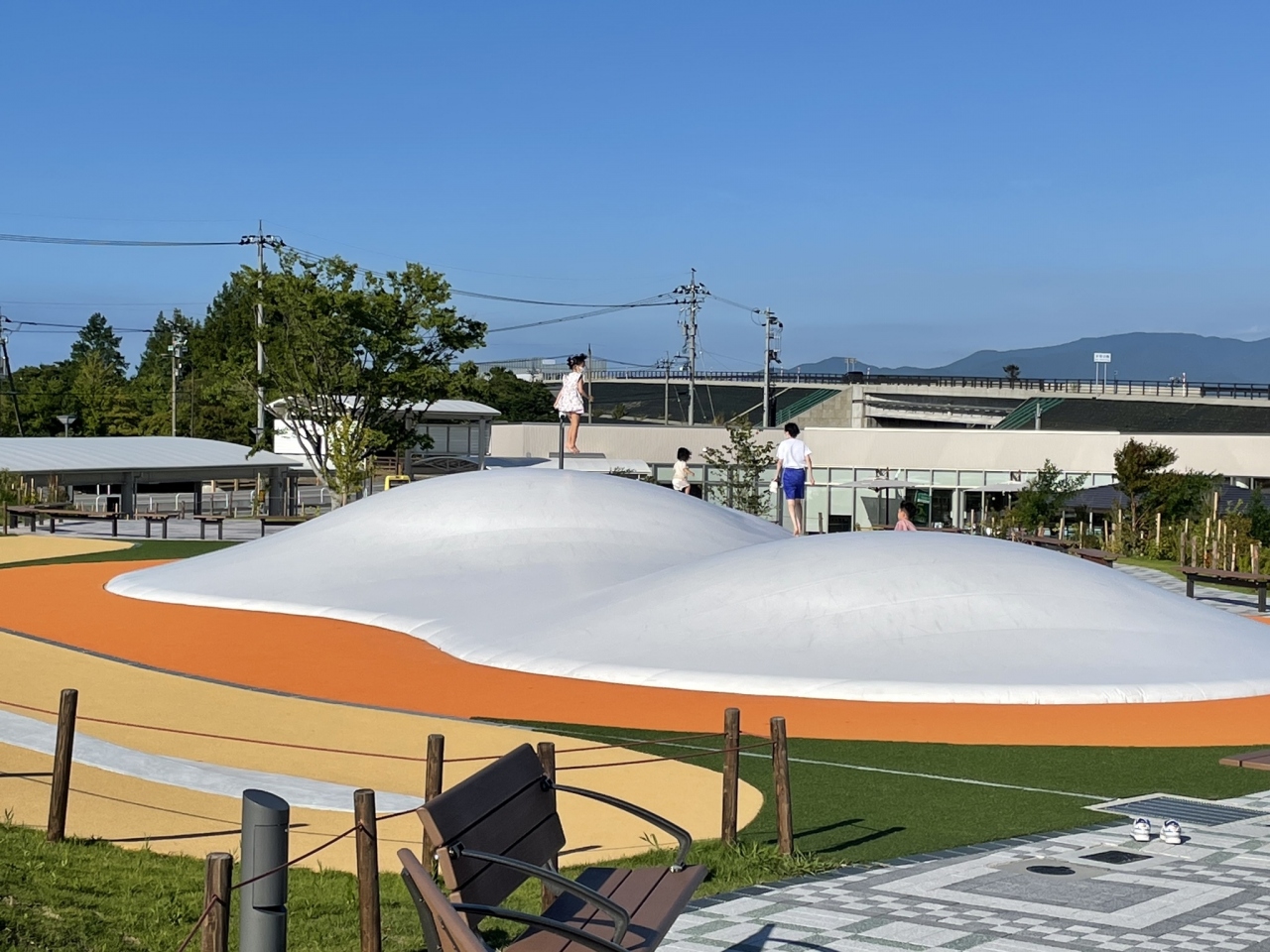 新しい道の駅なので、施設のつくりが最近の思想のものが多く、遊べる滞在型の道の駅となっていました。ふわふわドームがとても大きくたくさんの子供たちが一緒に利用できそうな感じでした。しかも遊具がどれもピカピカです。
