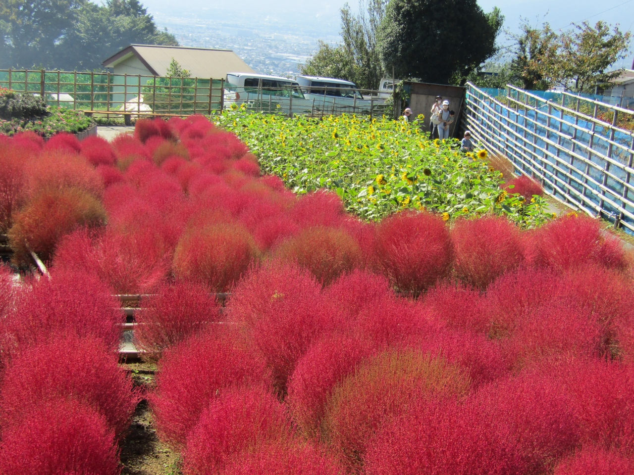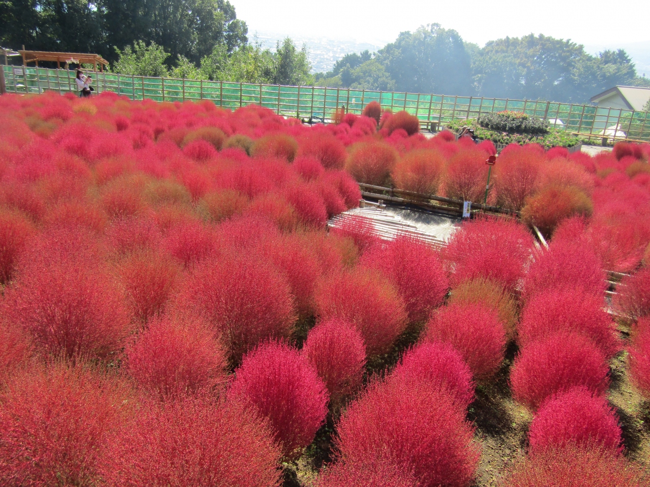 西平畑公園の駐車場は早春の河津桜の時期以外にも秋になると10月から営業している。「コキアの里」が開園しているからだ。