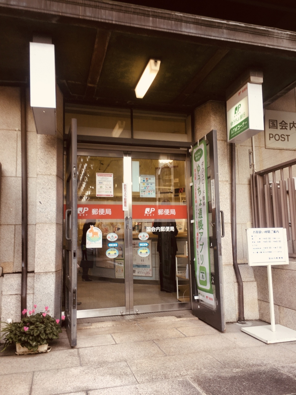 狭めの店内でATMが一つあり、カウンターは4番カウンターの番号が抜けていて、1から5番までありました。店内は普通の郵便局と変わらない風景です。外から一般客は入ることが出来ますが、国会エリアと繋がっている内部には入ることが出来ないです。